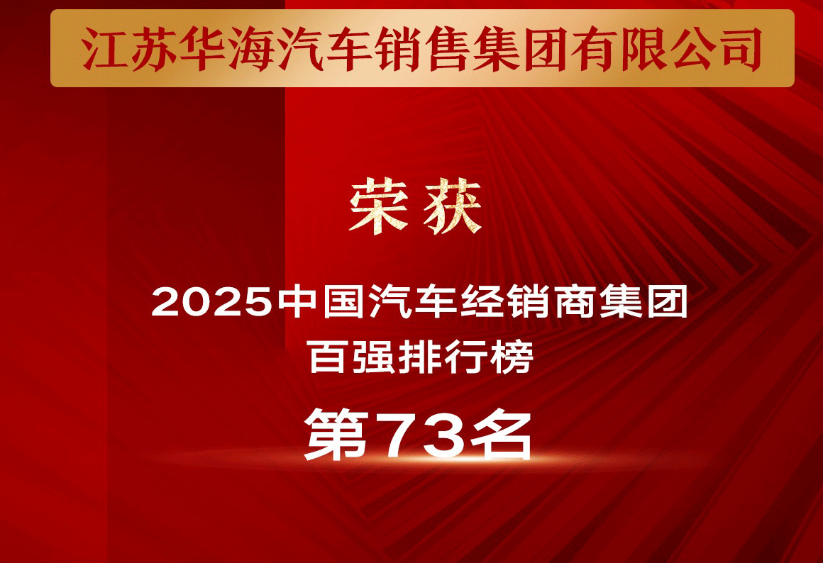 江蘇華海汽車集團(tuán)榮登2025中國汽車經(jīng)銷商百強(qiáng)榜